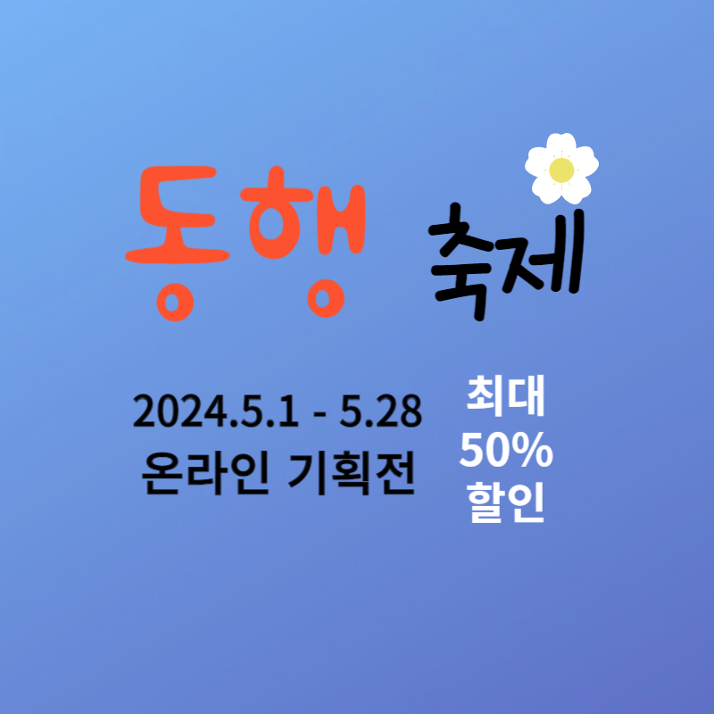 동행축제 행사기간은 2024년 05월 01일부터 ~ 05월 28일까지로 온라인 특별기획전, 라이브커머스, 동행제품 판매전, 지역축제 연계 판매전, 소비촉진 이벤트 등 다양한 할인 행사가 진행 중입니다. 선착순 쿠폰발행 및 인기상품 조기소진 등이 발생하고 있으니 원하시는 제품이 있다면 서둘러 혜택 받아보시기 바랍니다.